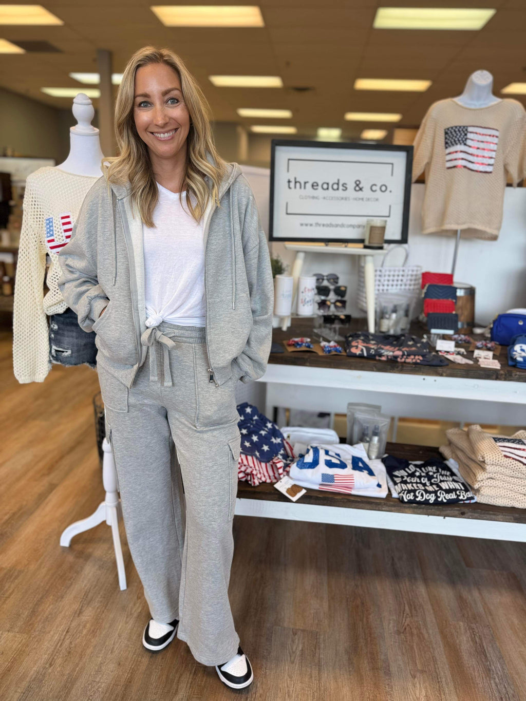 RISEN LOUNGE LINE: HIGH RISE SIDE POCKET JOGGER (HEATHER GREY)