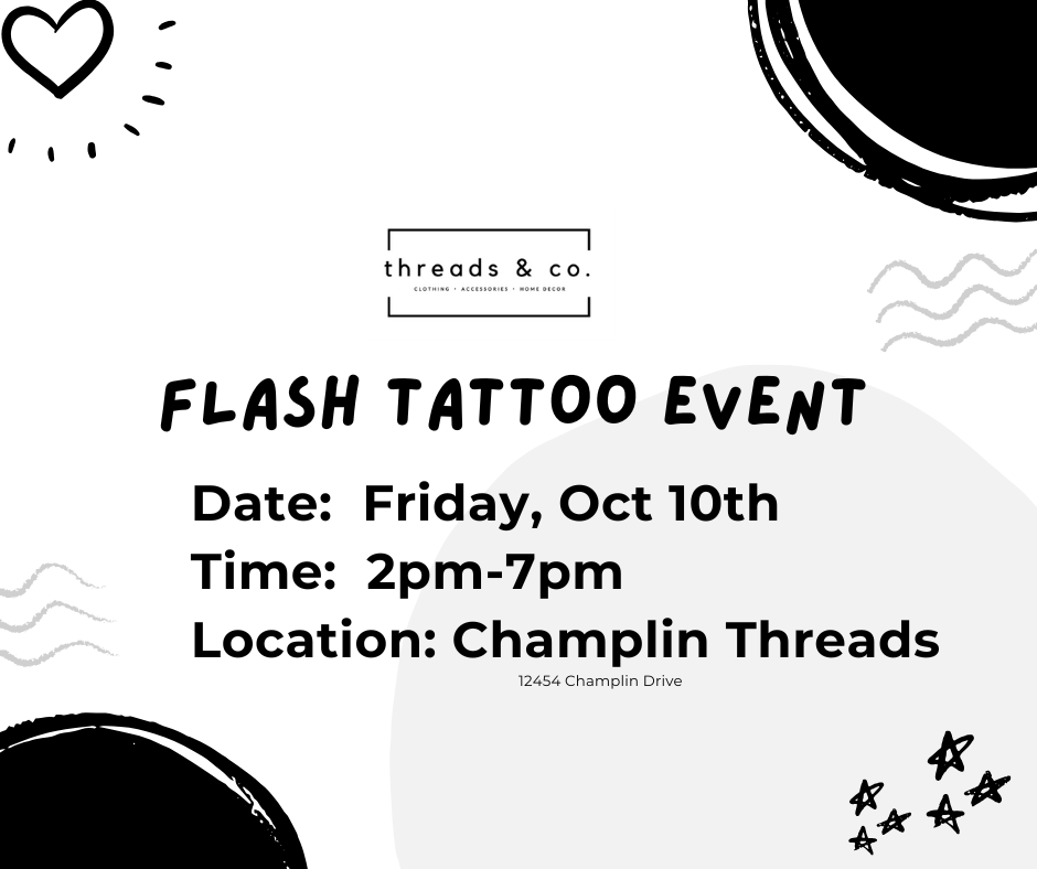 We want Threads customers to have the chance to get tattoos at these events! This is our way to make it possible! Purchase an Event Registration and secure your spot & get a threads gift card. You already shop with us, so this gift card can be used at any time you’re shopping with Threads — plus, it secures your spot to get tattoos! 🎉✨