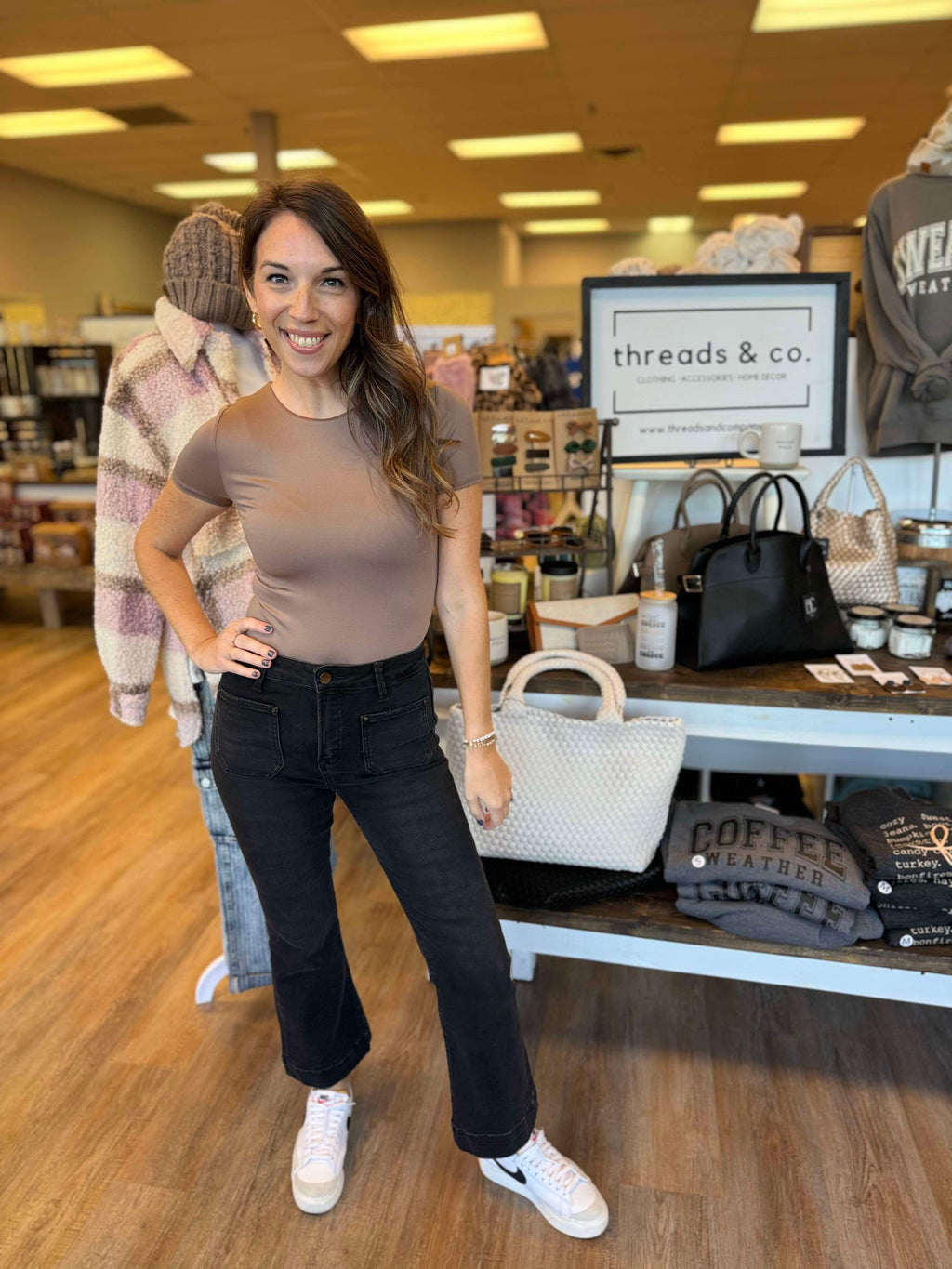 ROUND NECK SHORT SLEEVE BODYSUIT | TAUPE