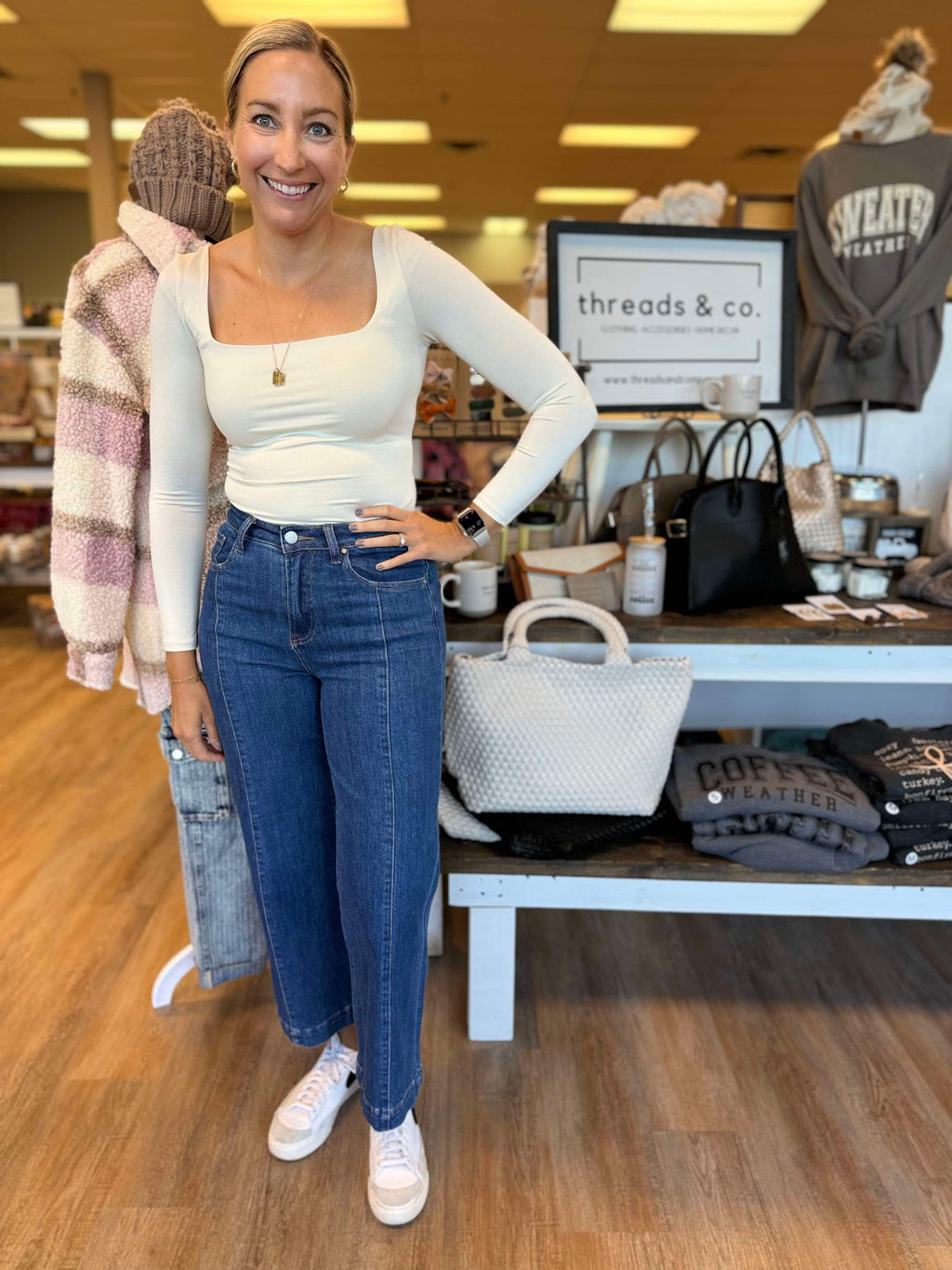 SQUARE NECK LONG SLEEVE BODYSUIT | WHITE