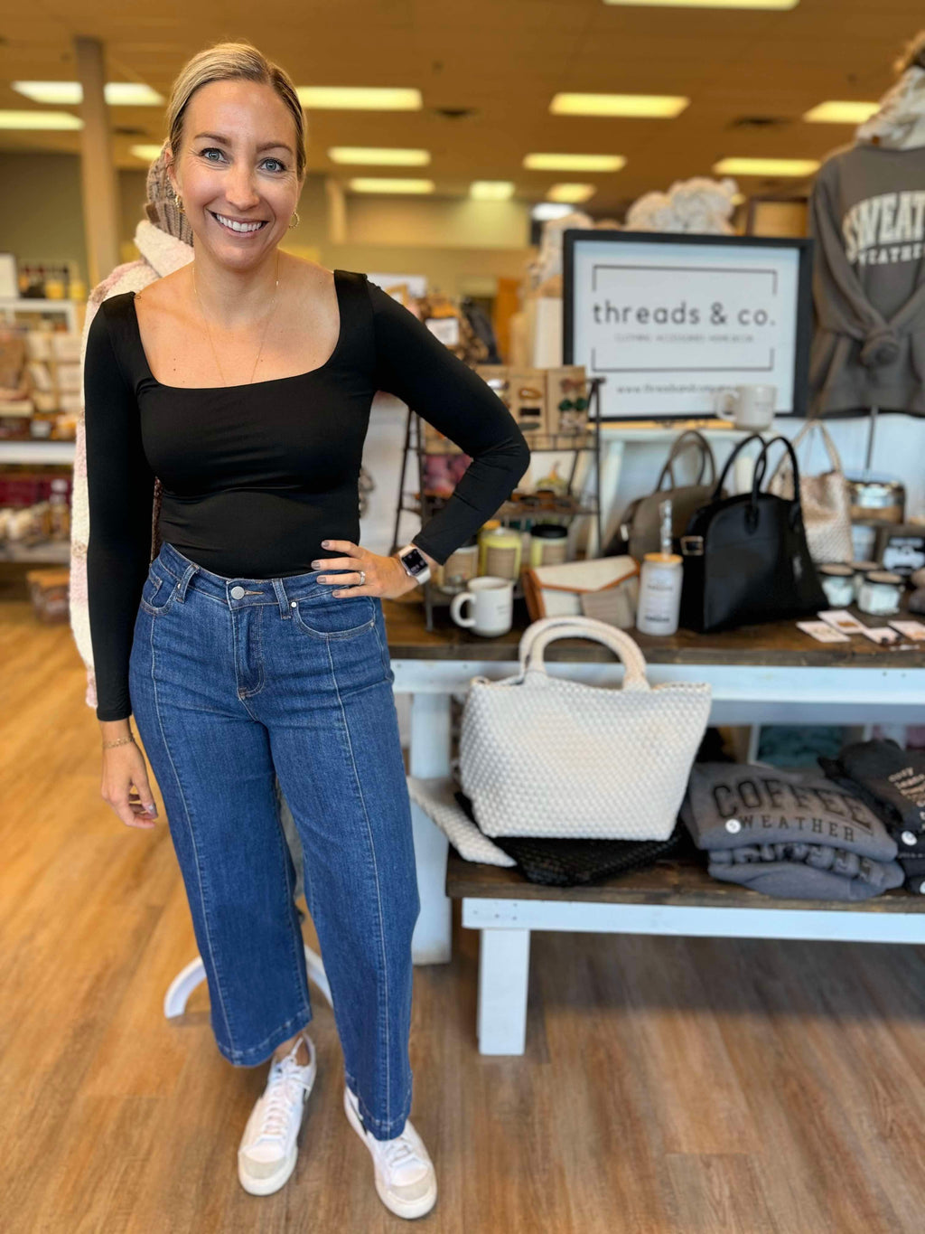 SQUARE NECK LONG SLEEVE BODYSUIT | BLACK