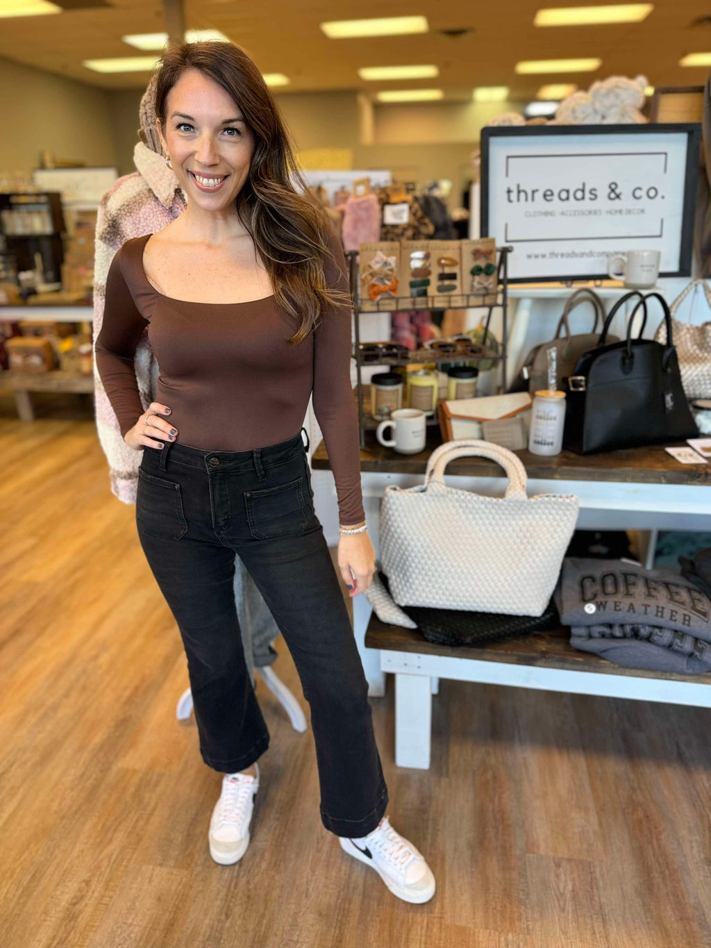 SQUARE NECK LONG SLEEVE BODYSUIT | BROWN