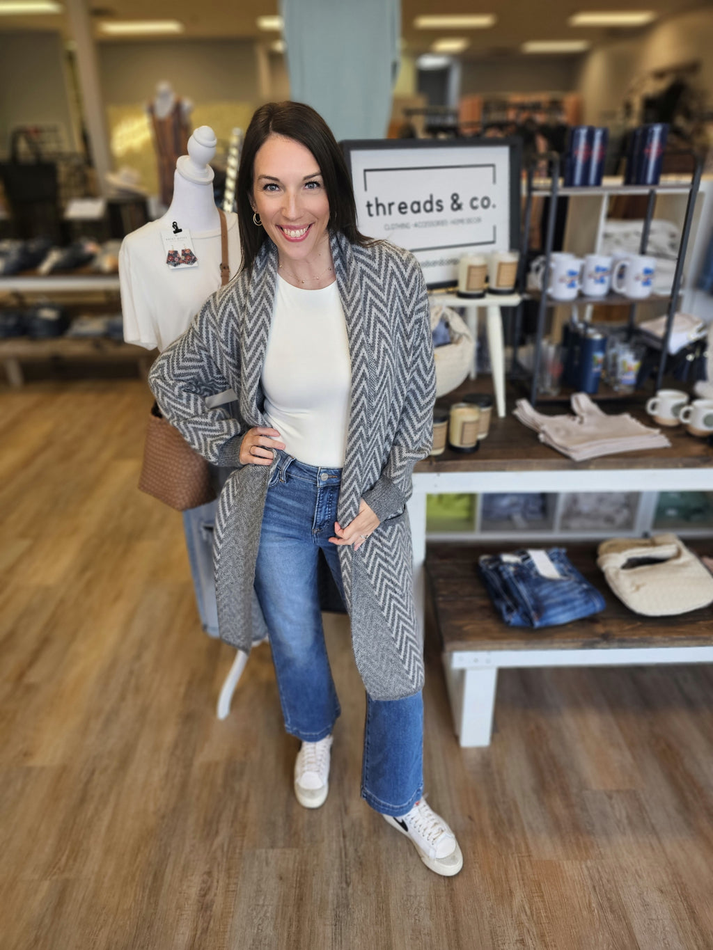 Heathered Chevron Shawl Cardigan (IVORY SAND)
